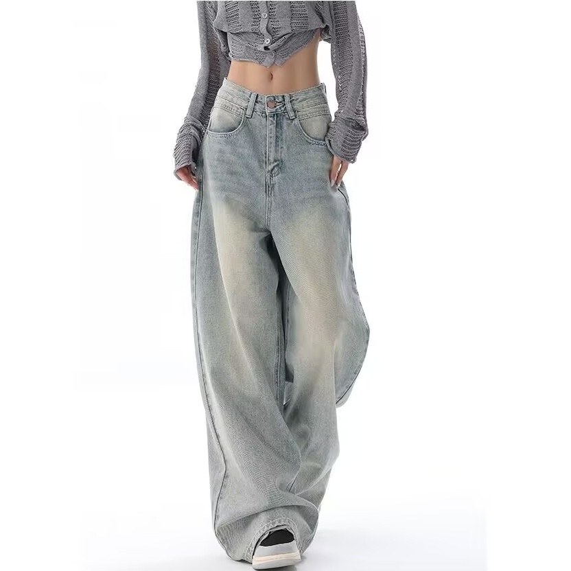 KATERMEN Jeans Ukuran Besar-Jeans biru-Jeans wanita-Jeans longgar kaki lebar-Jeans pinggang tinggi