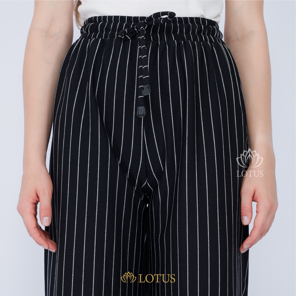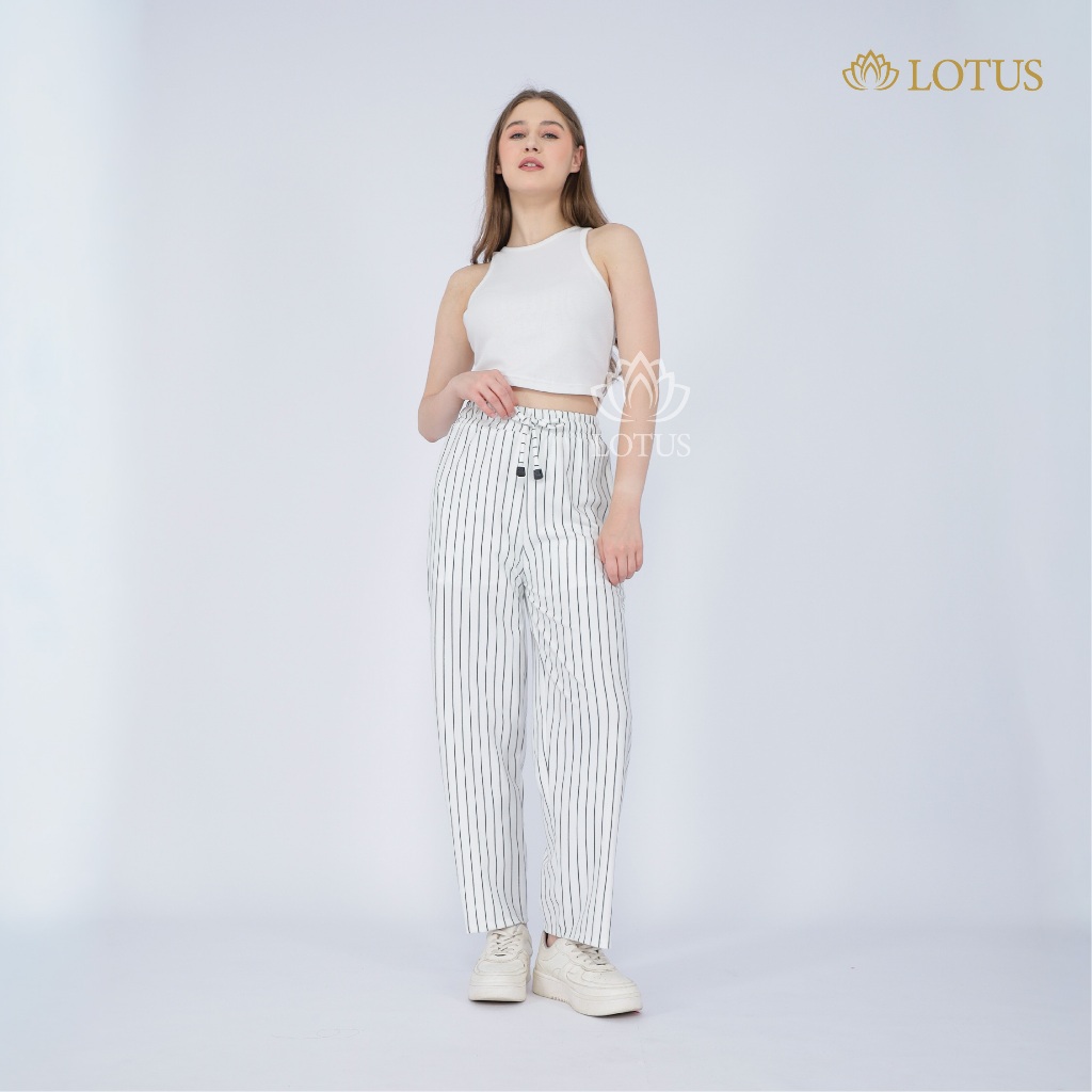 LOTUS - Celana Wanita Panjang Stripe Pants Bangkok Premium Quality Motif Garis Kulot Formal Casual Wanita Loose Pants Basic