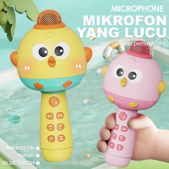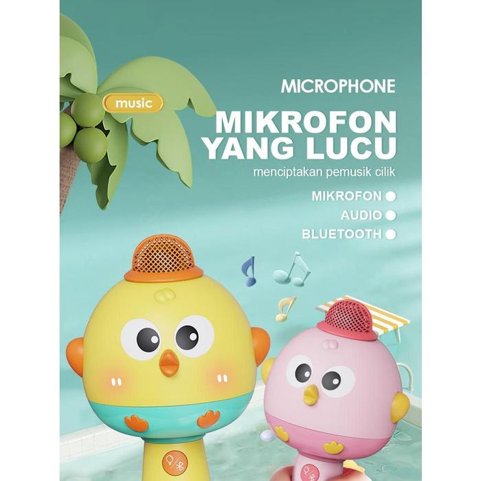 MAINAN MIKROFON ANAK MIKROFON BLUETOOTH WIRELESS DENGAN FITUR SPEAKER MAINAN NYANYI UNTUK BAYI&ANAK - KUNING