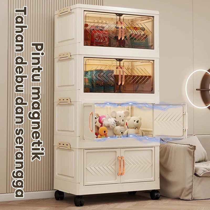 Lemari Buku Serbaguna Ada RodaLemari Makanan Minimalis ModernKabinet Plastik Lipat Kombinasi