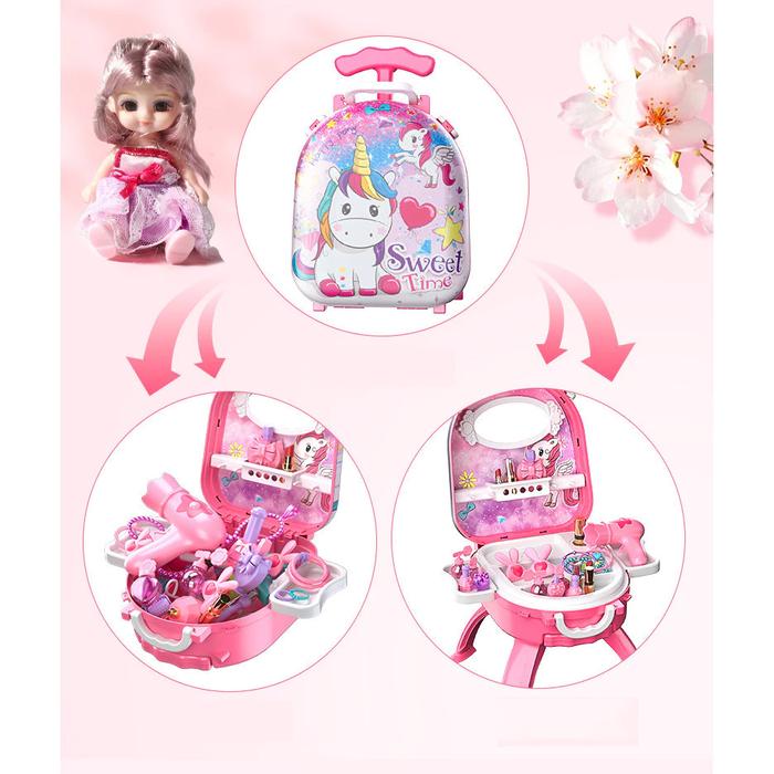【】MAINAN ANAK MEJA RIAS KOPER TROLLEY BEAUTY DRESSING KOPER BAGASI - KUROMI