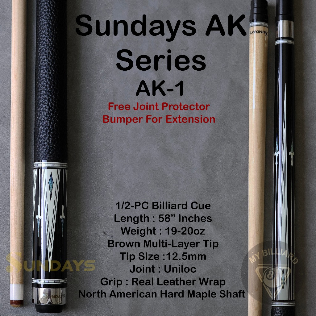 Stick Billiard Sundays AK-1 12.5mm Uniloc - Leather Grip - Stik Billiar Sundays AK 1 bukan Fury ak