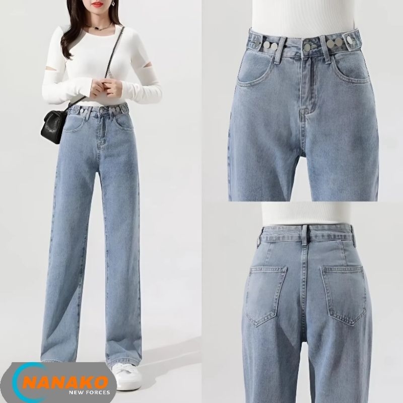 CELANA JEANS KULOT HIGHWAIST PANJANG WANITA SKODER HAIGWAIS LOOSE ADJUSTABLE PINGGANG DAPAT DISESUAIKAN KOREA STYLE DENIM