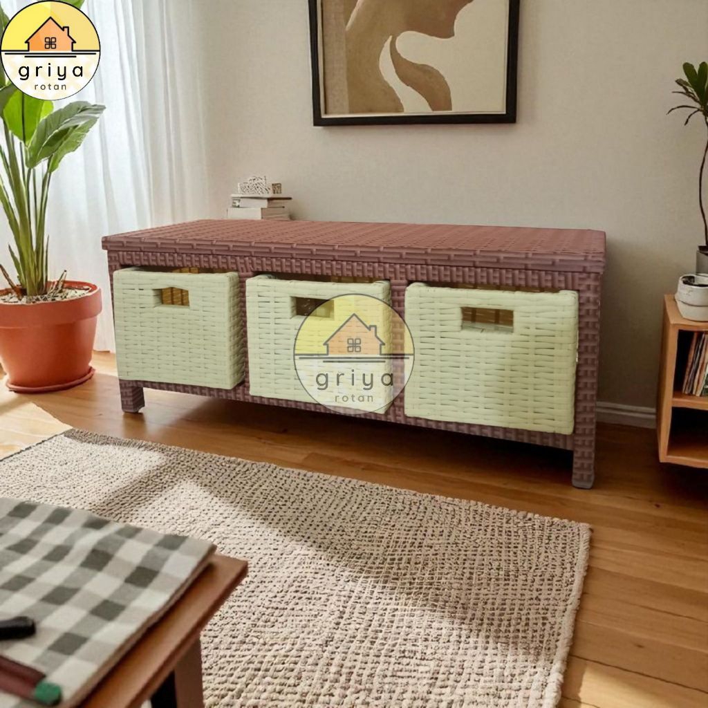 Lemari Plastik Susun 3 Minimalis Rotan Sintetis