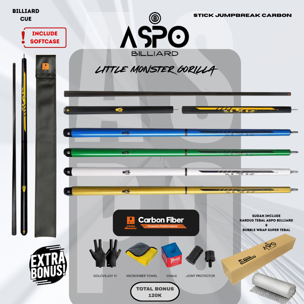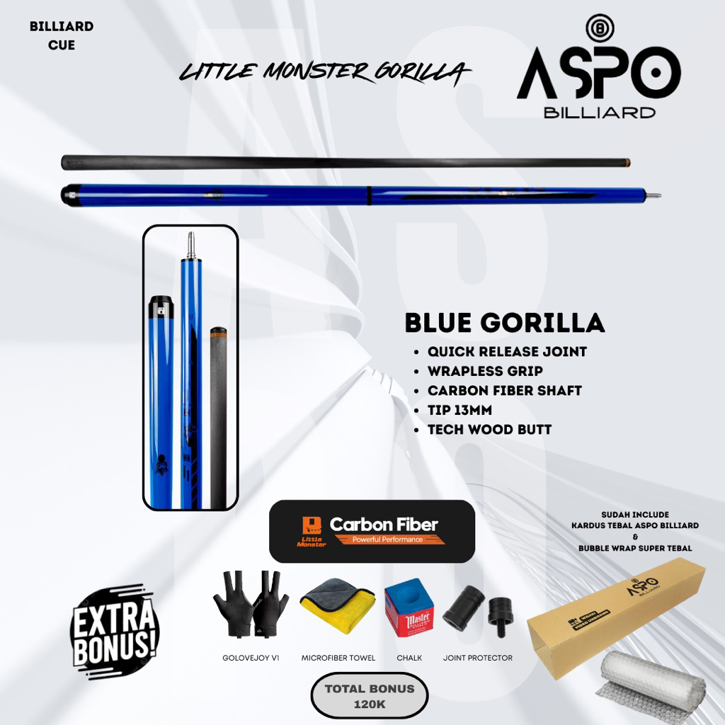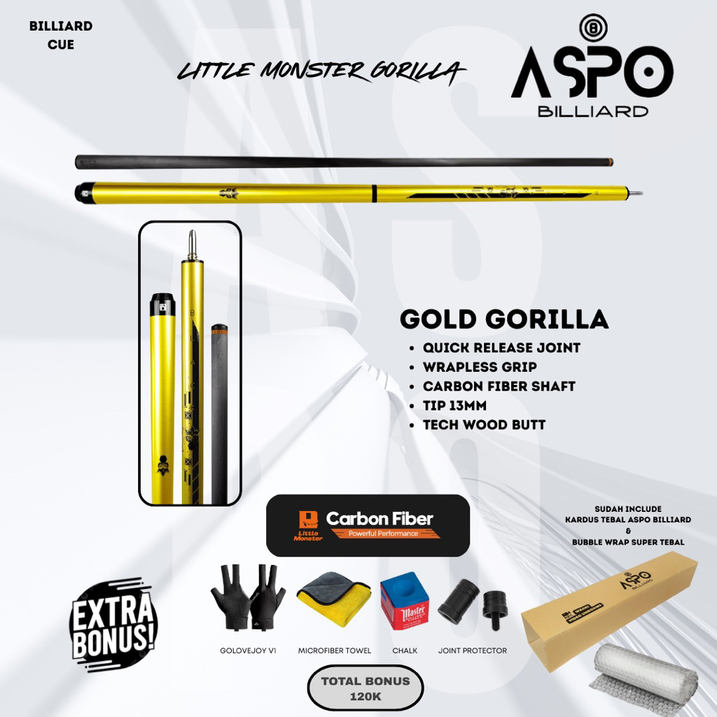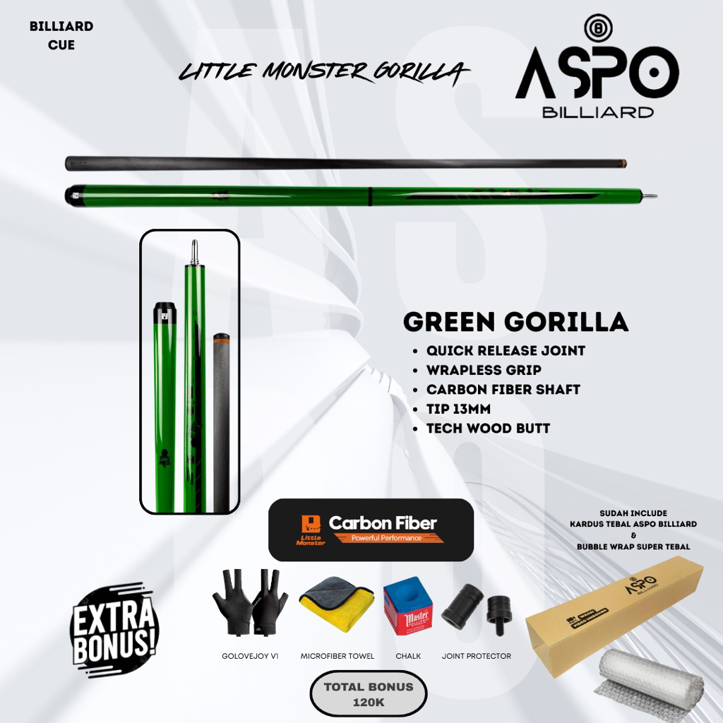 LITTLE MONSTER GORILLA Jump Break Cue 13 mm || Stick Billiard JumpBreak Heidan Gorilla Stik Biliar