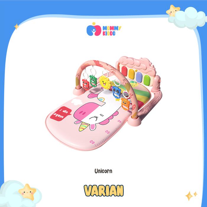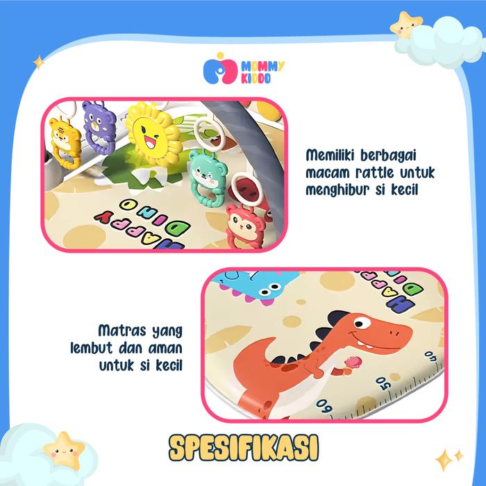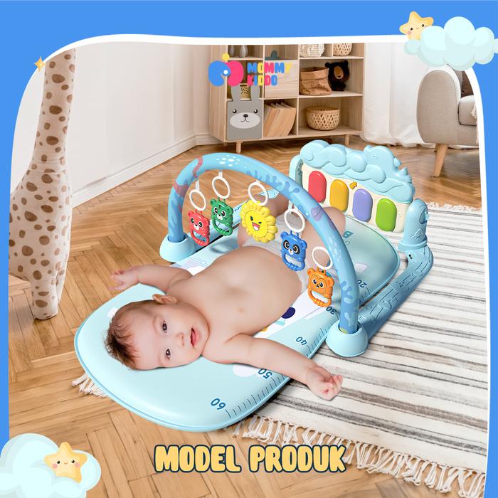 MOMMY KIDDO MAINAN BAYI PLAYMATE PIANO MATRAS DENGAN MUSIK DAN 5 RATTLE TOYS - PLAYGYM BABY - BERUANG ABU