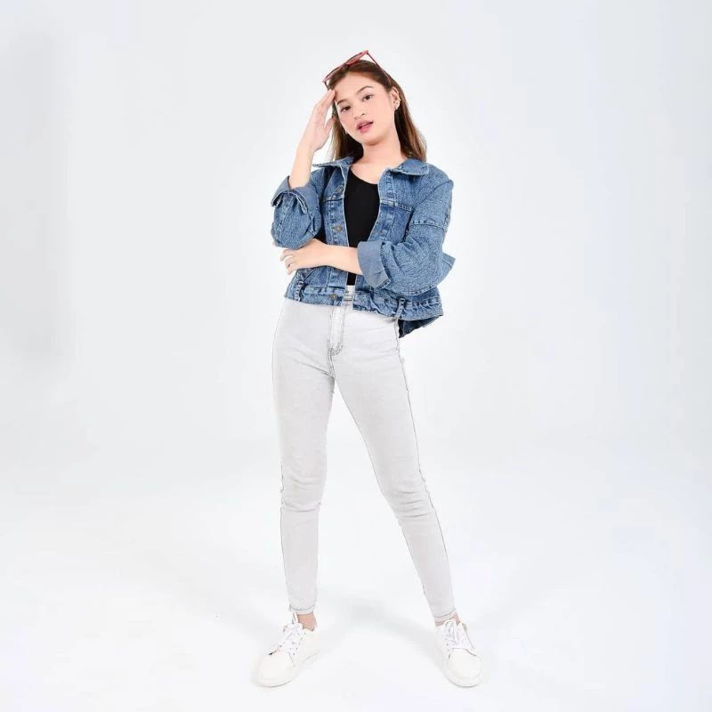 AMELO - Jaket Jeans Wanita Pulbear Jacket Crop Oversize