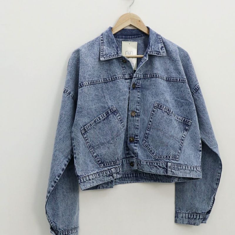 Jaket Jeans Wanita Bordir Jumbo Oversize Jeans Denim Snow Wash Korean Style Terbaru Kekinian