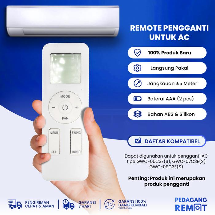 Remote Pengganti Untuk Remote AC YAY1F1 / Remot AC Deluxe Low Watt GWC-05C3E(S) GWC-07C3E(S)