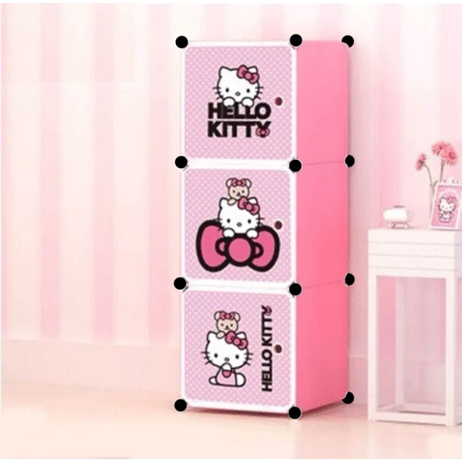 Lemari pakaian lemari plastik lemari baju anak rak buku rak topi 3 kotakpintususun