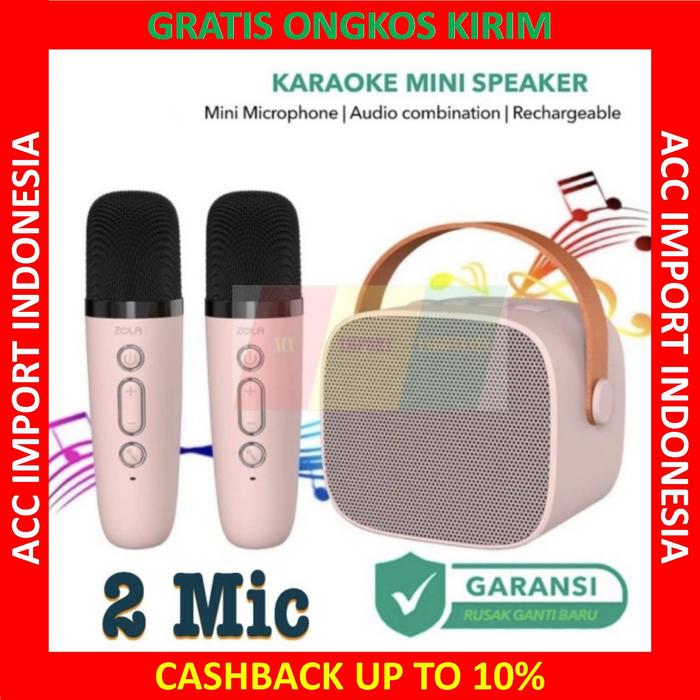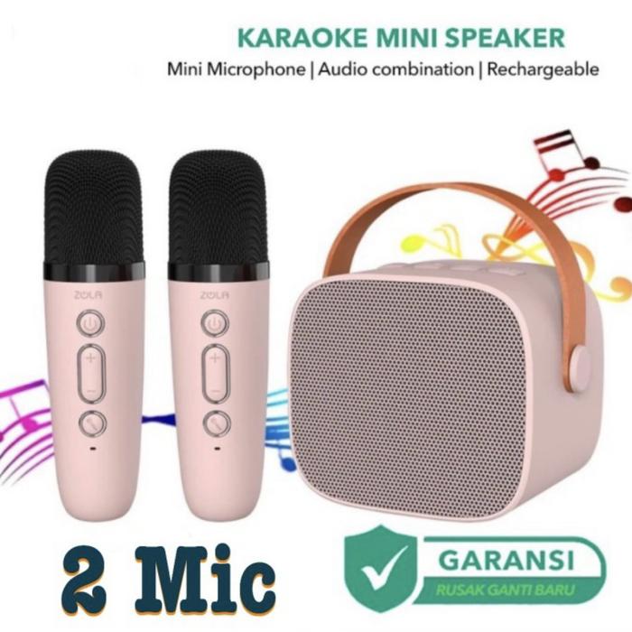 SPEAKER KARAOKE 2 DOUBLE MICROPHONE PORTABLE MINI ANAK LUCU EDUKASI - PUTIH