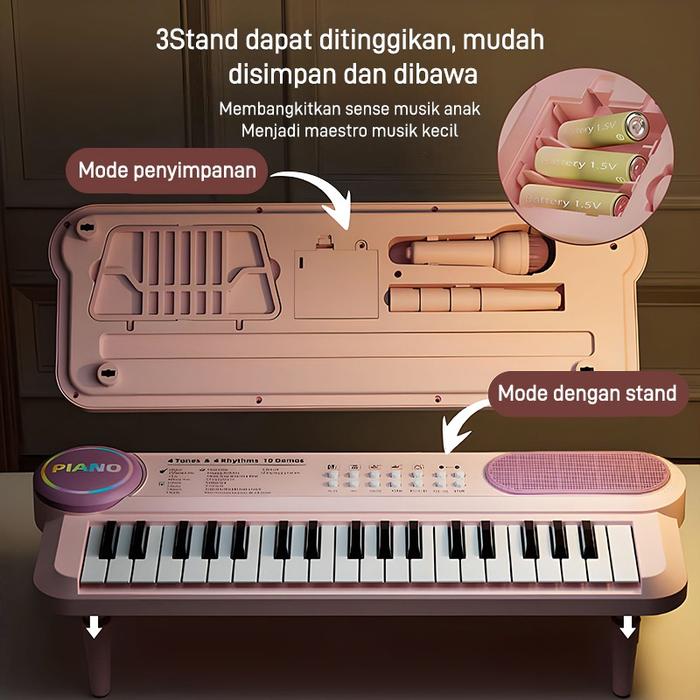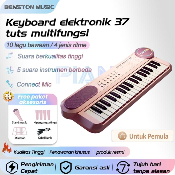 BENSTON MUSIC- MAINAN ANAK PIANO ELEKTRONIK 37 KEYS / KEYBOARD ELECTRONIC 37 KEYS LENGKAP MIC DAN CHARGER - PENGGEMAR IMPIAN