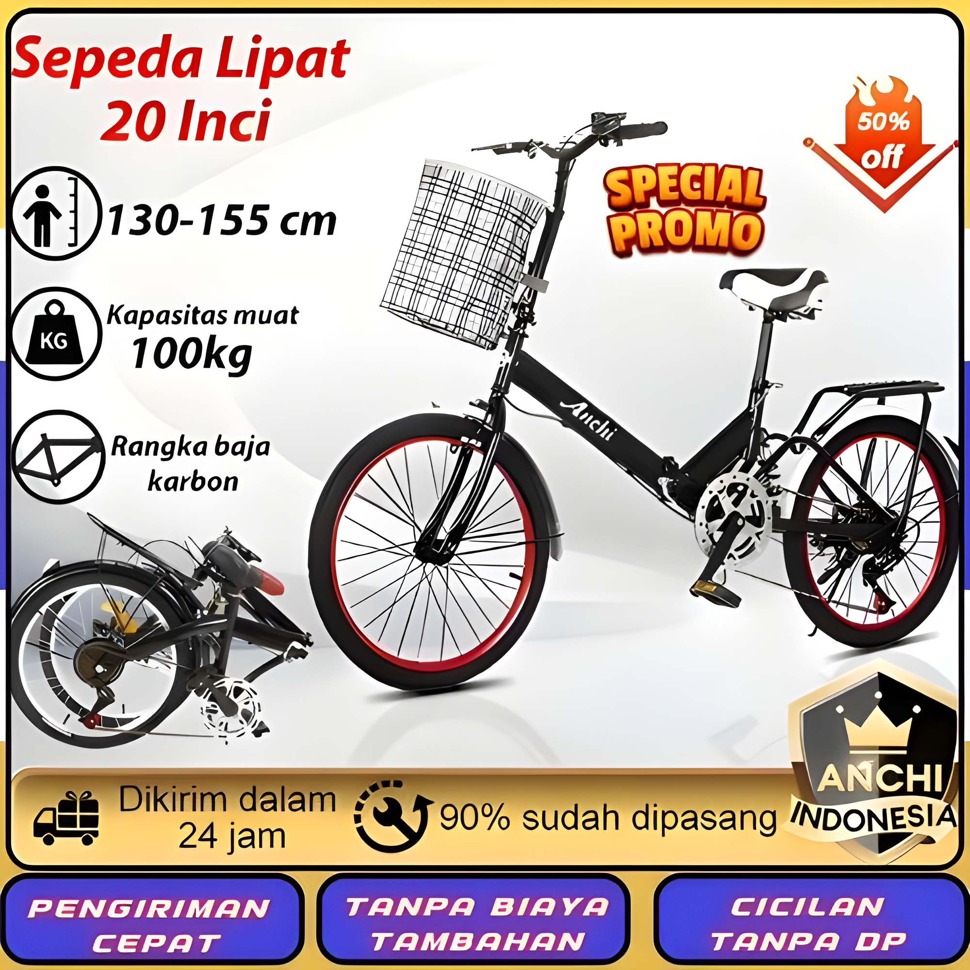 Sepeda Lipat Dewasa 20inc Anchi Sepedah Lipat Anak Perempuan folding Terbaru