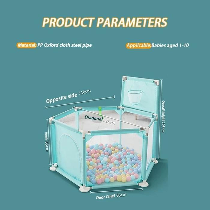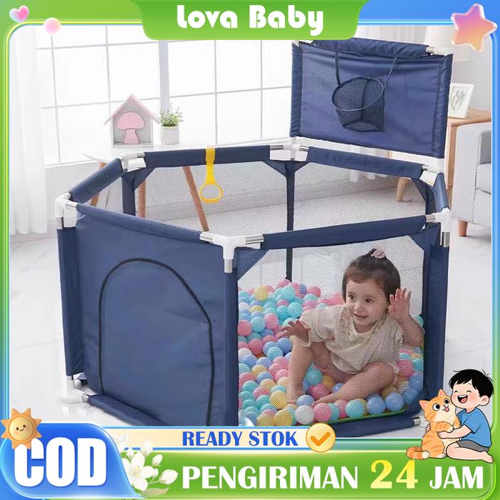PAGAR BAYI BERMAIN BABY PLAYPENS PAGAR BAYI LIPAT MANDI BOLA MURAH PAGAR BERMAIN ANAK - BIRU+RING BASKET