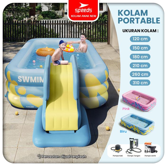 SPEEDS KOLAM RENANG ANAK TIUP UKURAN 180X130X56CM MANDI BOLA POMPA BAHAN KUAT INFLATABLE SWIMMING POOL FOR KIDS 020-49 - 120X90X56CM BIRU, KOLAM SAJA