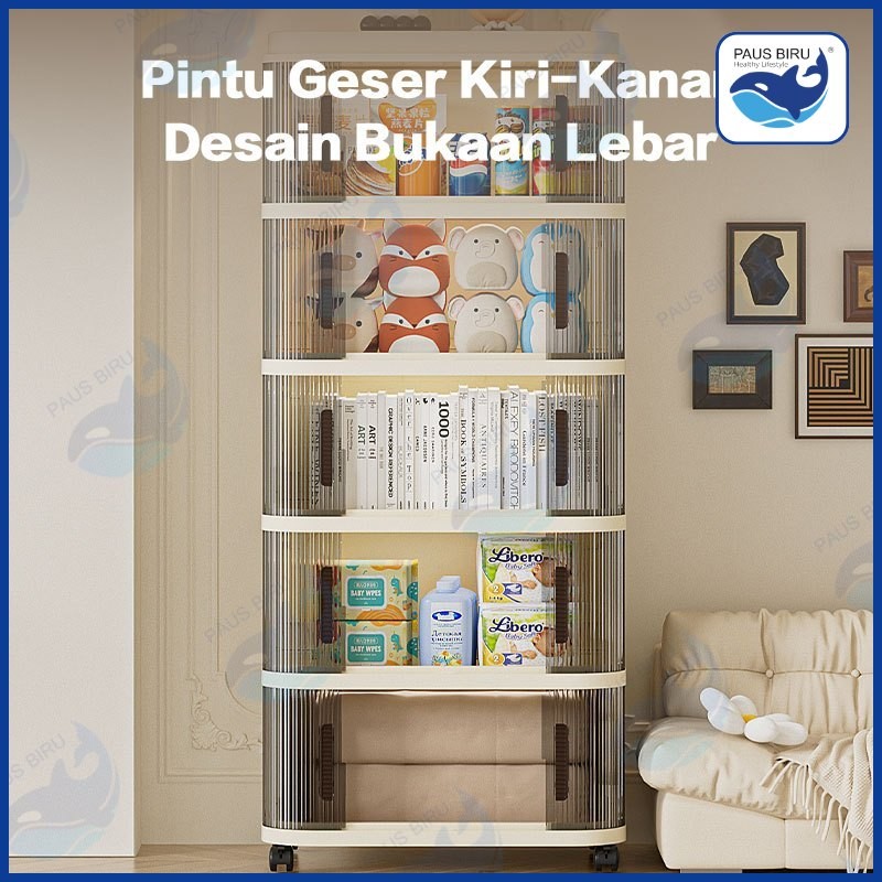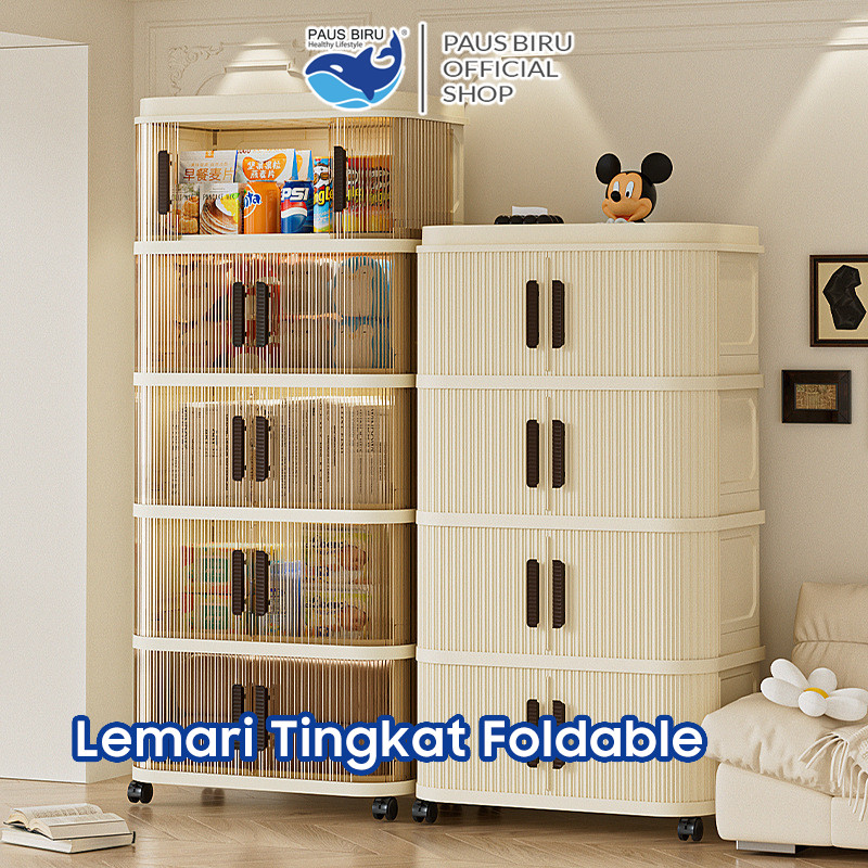 Paus Biru Lemari Plastik Lipat Beroda 48CM Estetik, Tanpa Instalasi Kapasitas Besar DIY