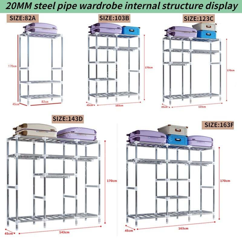 20MM Tube Lemari Kain Pakaian Lemari baju gantung portable Tahan Debu Air Dengan Ritsleting