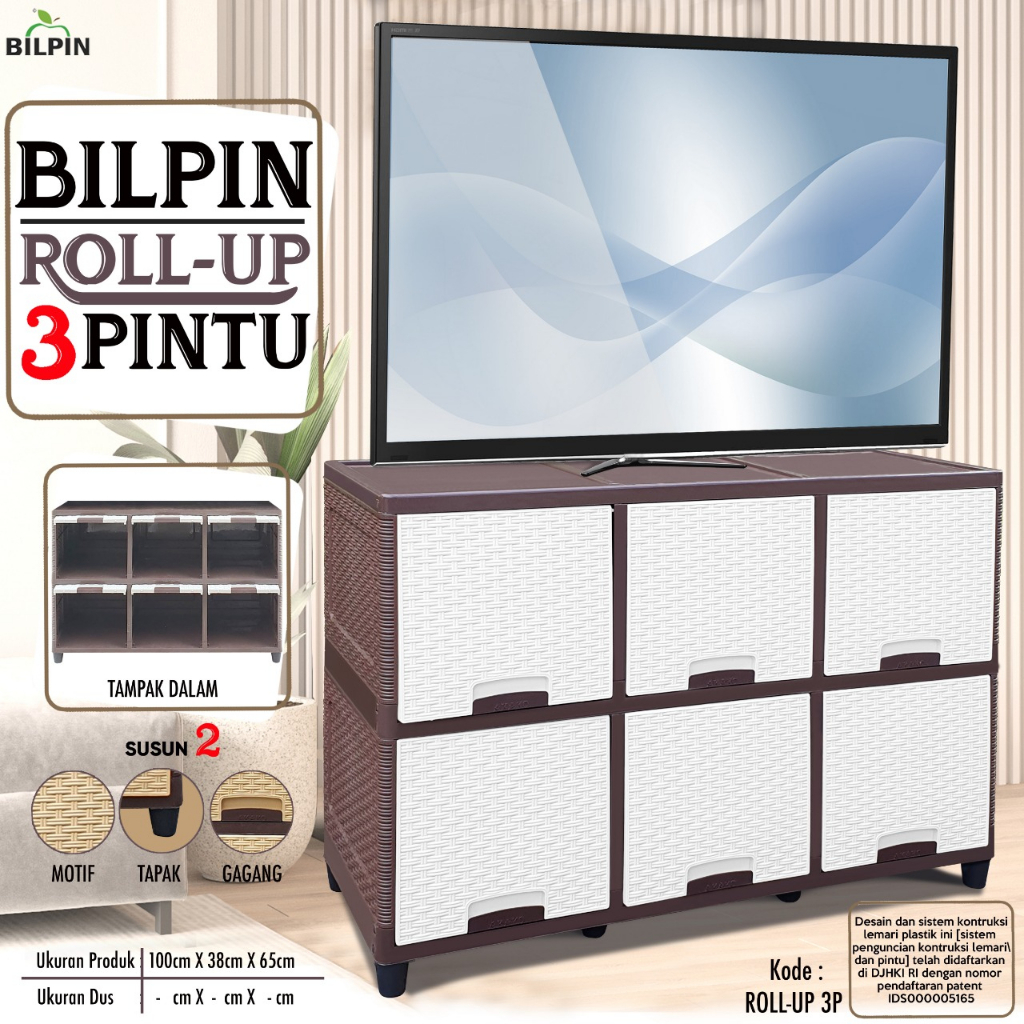 Lemari Plastik Akako BIlpin Rollup Pintu Sliding 6 pintu Susun 2 Rak TV Akako