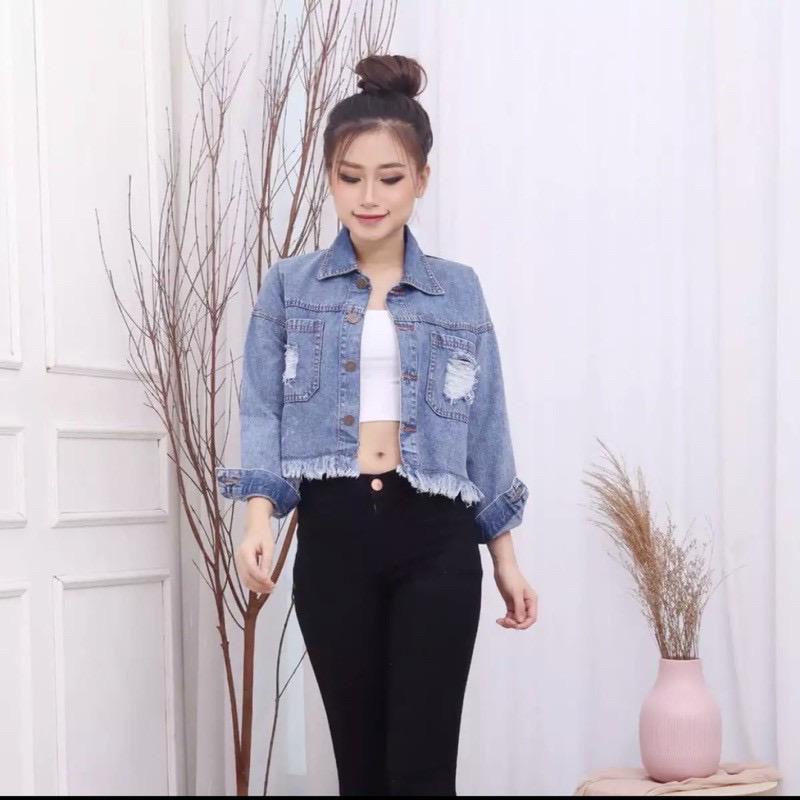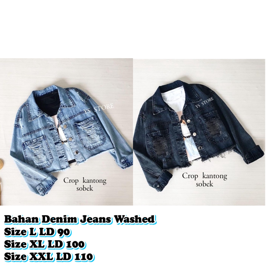 JAKET JEANS SOBEK KANTONG SNOW BLACK & SNOW BLUE NEW L - XXL / JAKET JEANS JUMBO
