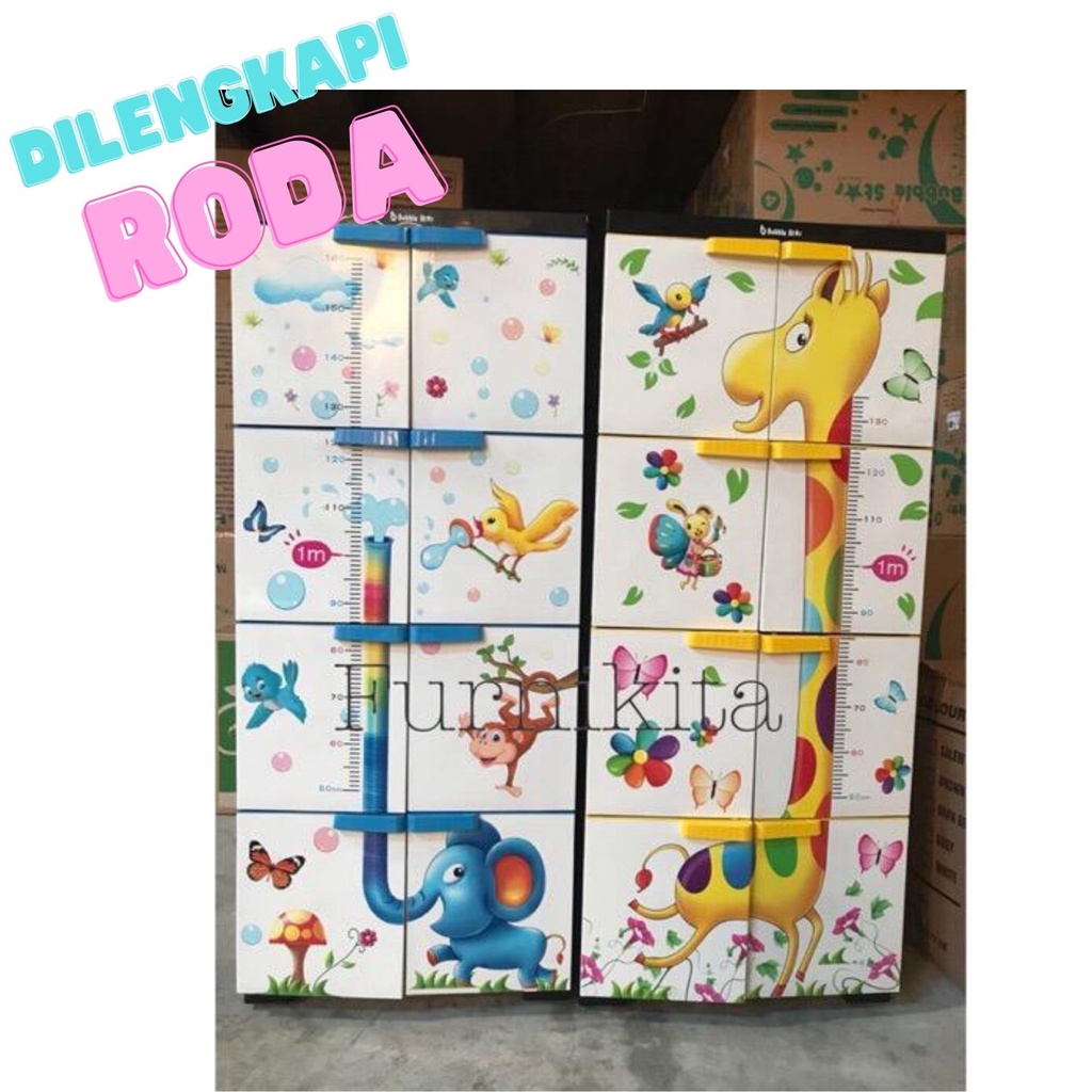 JUMBO RODA LEMARI PAKAIAN PLASTIK BUBBLE STAR SUSUN 4 ANIMAL JERAPAH GAJAH