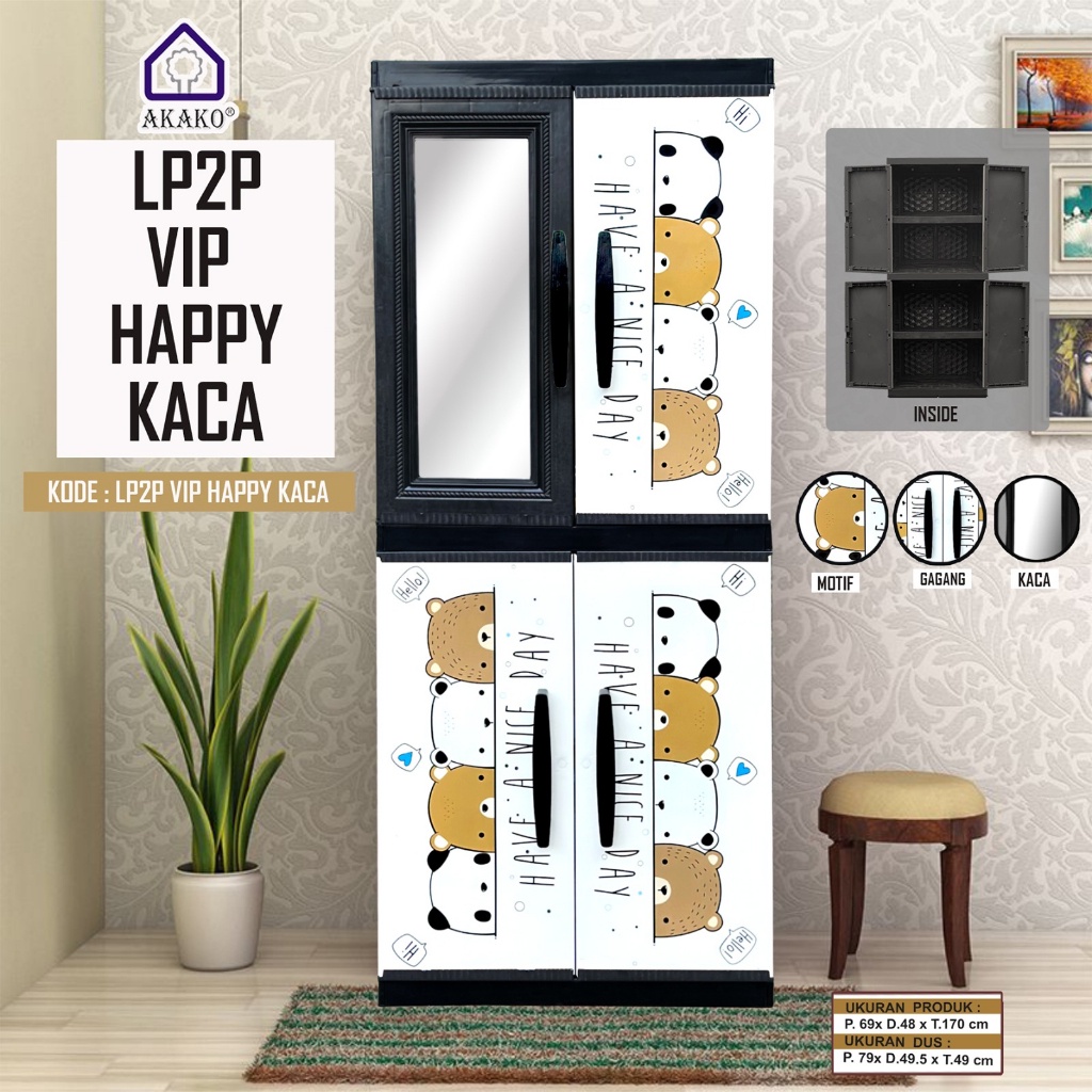 AKAKO Lemari Pakaian Gantung Jumbo 2 Pintu LP2P VIP Happy + KacaTanpa Kaca