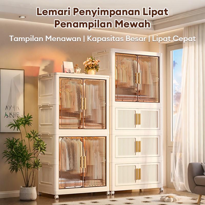 Ekstra Besar 80cm Lemari Lipat Putih Tebal Dengan Kapasitas Lemari Baju Storage Wardrobe Roda