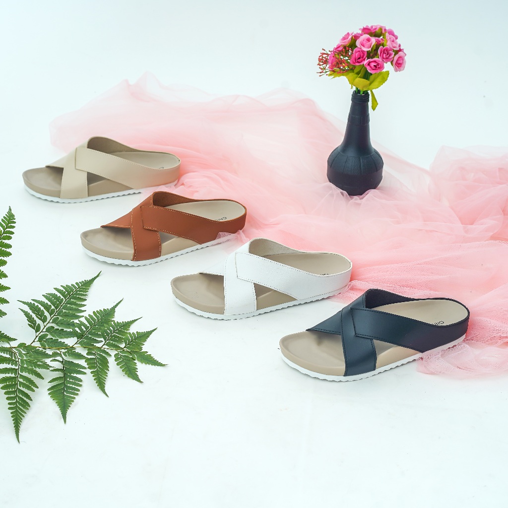 Christian Bale JESSICA Sandal Flat Puyuh Wanita Model Ban Dua Silang Kekinian
