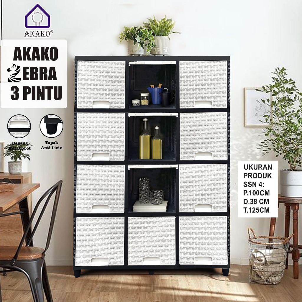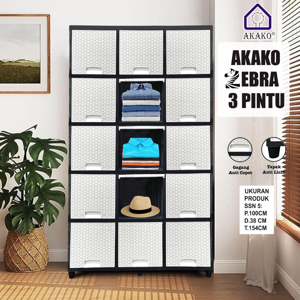 Lemari Pakaian Plastik AKAKO ZEBRA 3 PINTU 4 5 SUSUN LACI 12 PINTU 15 PINTU PUTIH ROTAN MURAH KOKOH