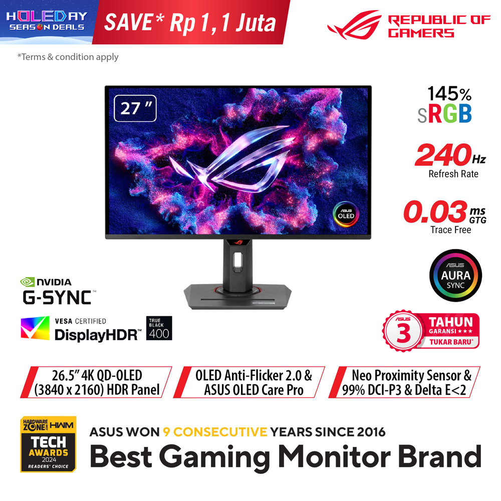 ASUS ROG Strix OLED XG27UCDMG 27" 4K QD-OLED, 240Hz, 0.03ms Gaming Monitor
