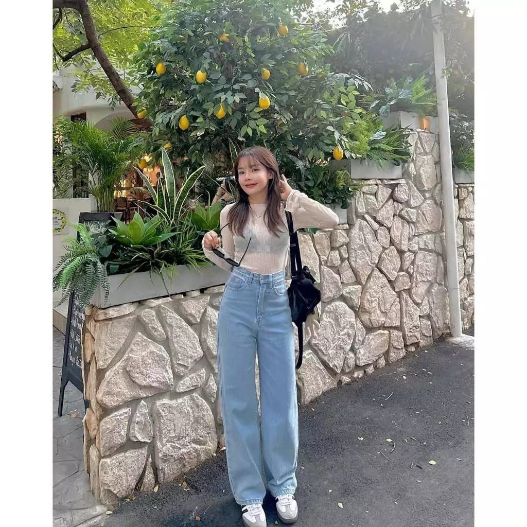 Highwaist Kulot Lose Jeans Wanita Non Stret Denim