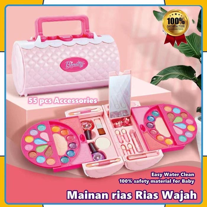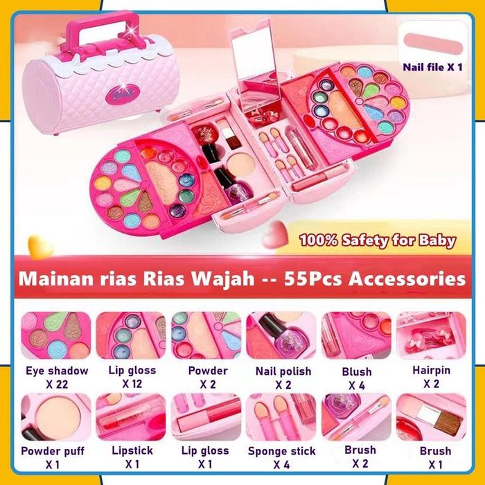 55PCS MAINAN KOSMETIK KECANTIKAN ANAK KASUS PERALATAN TIDAK BERACUN KOTAK MAKE UP UNTUK GADIS ULANG TAHUN HADIAH SET RIASAN MAINAN ANAK MAINAN MAKE UP - A(55PCS)