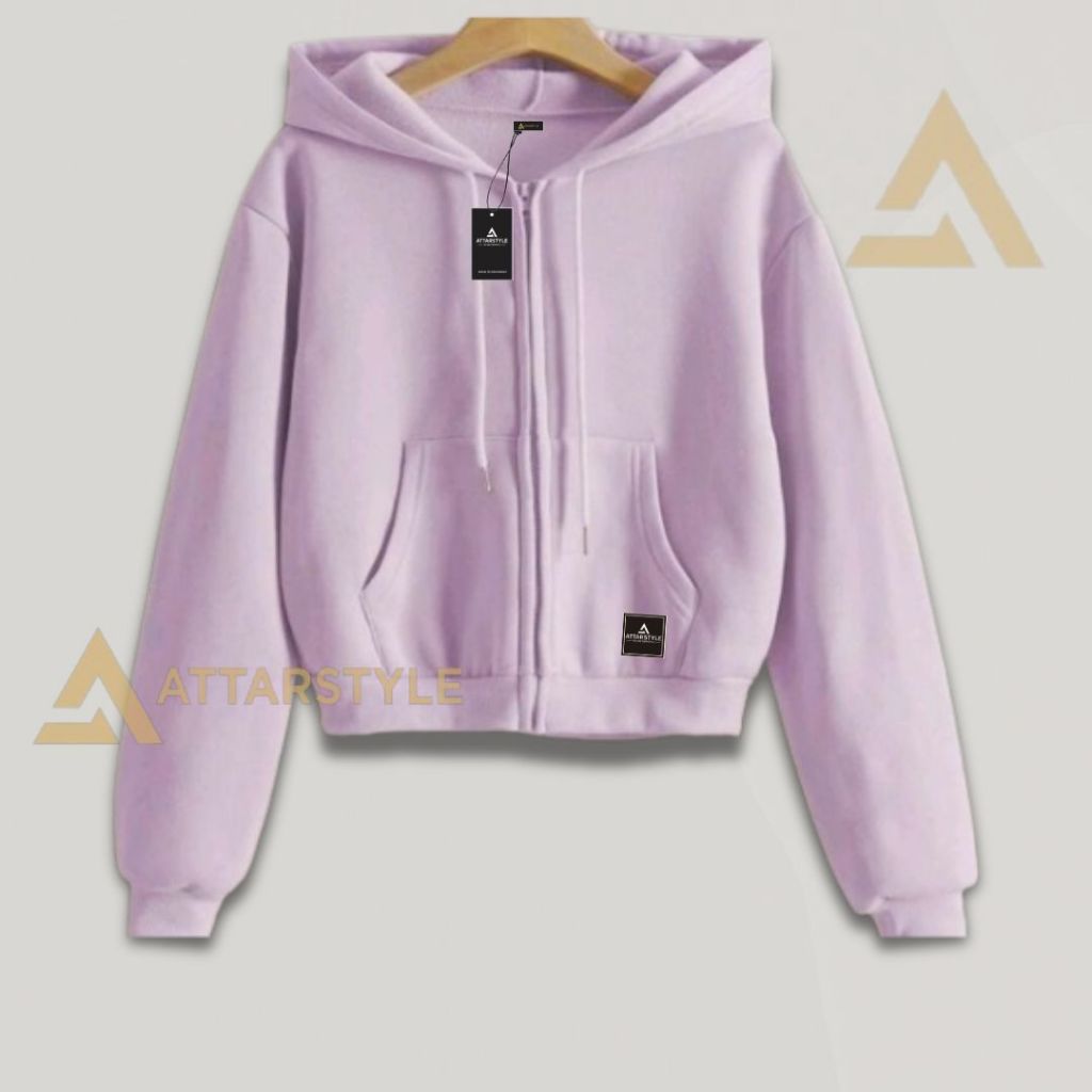 Jaket Hoodie zipper crop wanita premium sweater crope cewek polos terbaru bahan fleece tebal lembut adem gramasi 280gr topi Double Layer