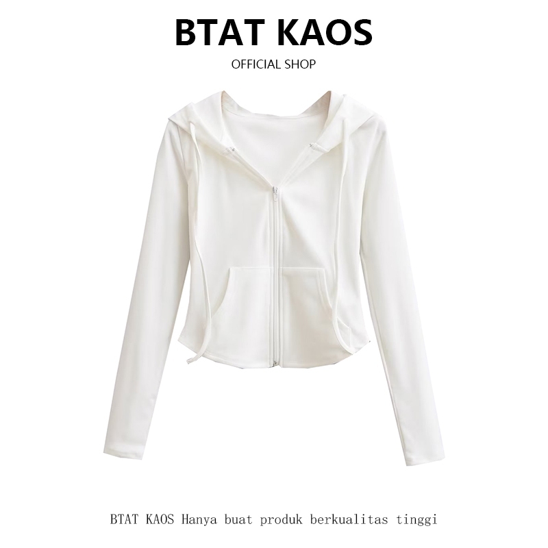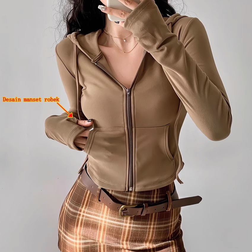 BTAT Premium Wanita Polos Crop Zipper Hoodie Jacket Cokelat Wanita Korean Style
