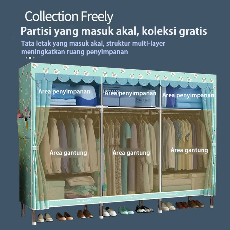 【Lemari Kain Pakaian Lemari Baju Gantung Sederhana Lemari Pakaian Kain Pipa Baja Tebal