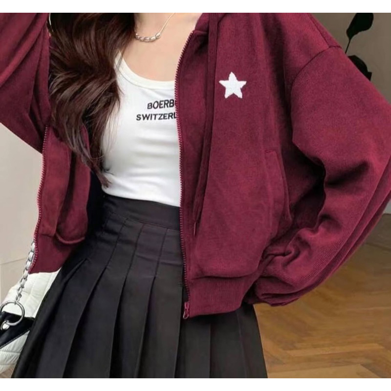 Varsity CROP Big Size ( S - 6XL ) Jaket Logo BINTANG CROPPED Varsity Jacket Resleting S M L XL XXL XXXL 4XL 5XL 6XL Jaket Baseball Wanita Korean Style