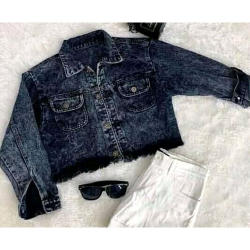 Jaket Jeans Wanita Korean Style Warna Snow Black / Light Blue Bisa Bayar Di Tempat