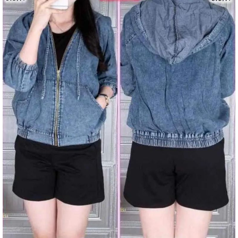 Jaket Jeans Hoodie Sleting Jumbo Kekinian Denim Retro