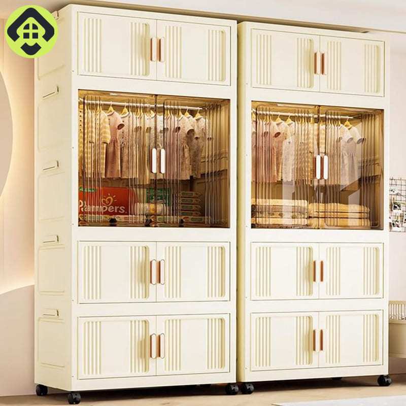 SALVO Lemari Pakaian Kapasitas Ekstra Besar Lemari Pakaian Plastik Susun Storage Wardrobe Katrol