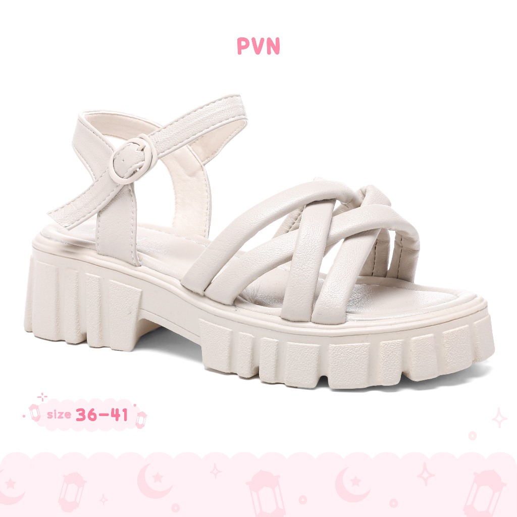 PVN Rhea Sandal Tali Wanita Krem Hitam 215