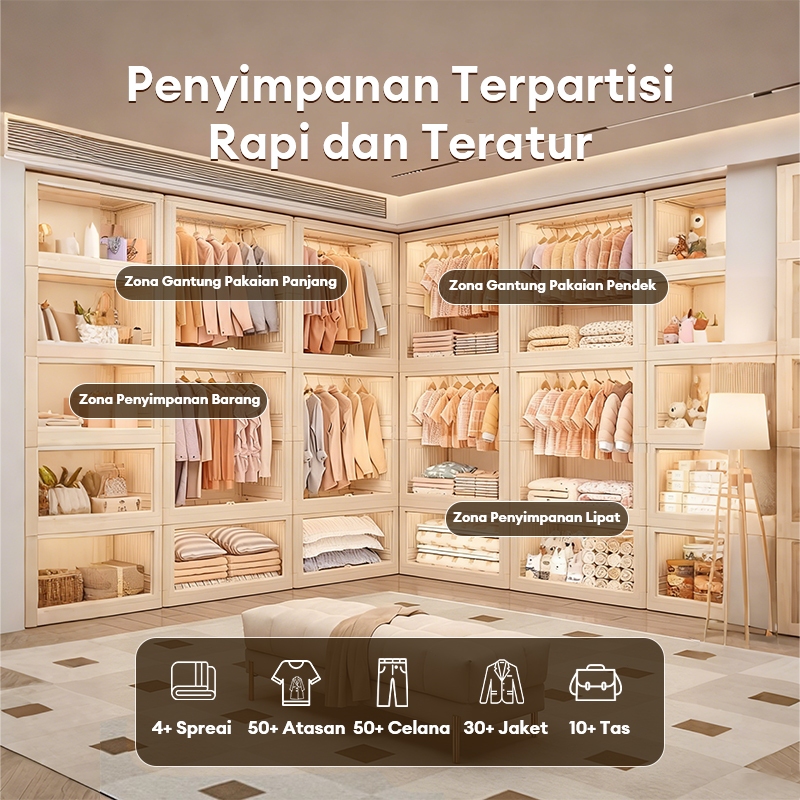 Ekstra Besar Lemari Lipat Putih Tebal Dengan KapasitasLipat Terintegrasi Mudah Dirakit