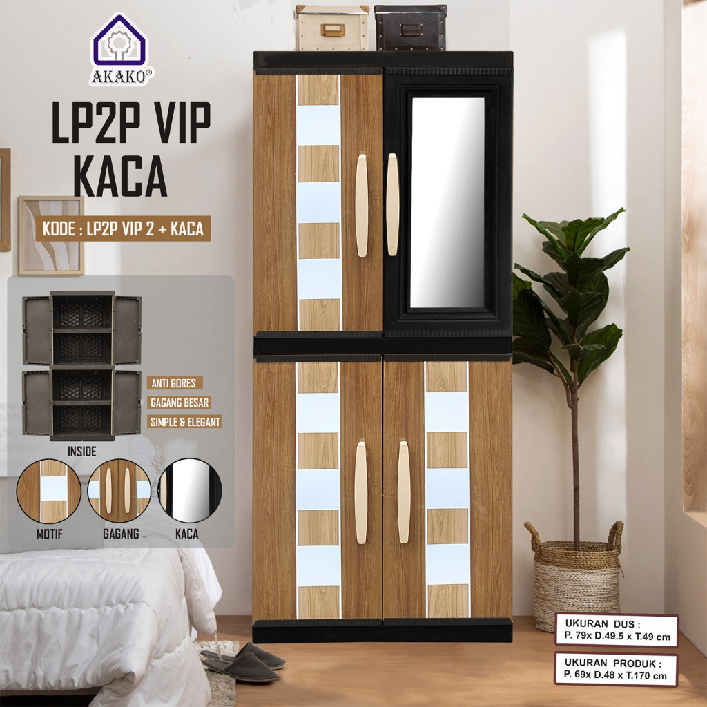 AKAKO Lemari Pakaian Plastik Baju JUMBO BESAR Mirip NAIBA MURAH LP2P VIP KACA CERMIN FULL KUNCI GDC HOUSEWARE