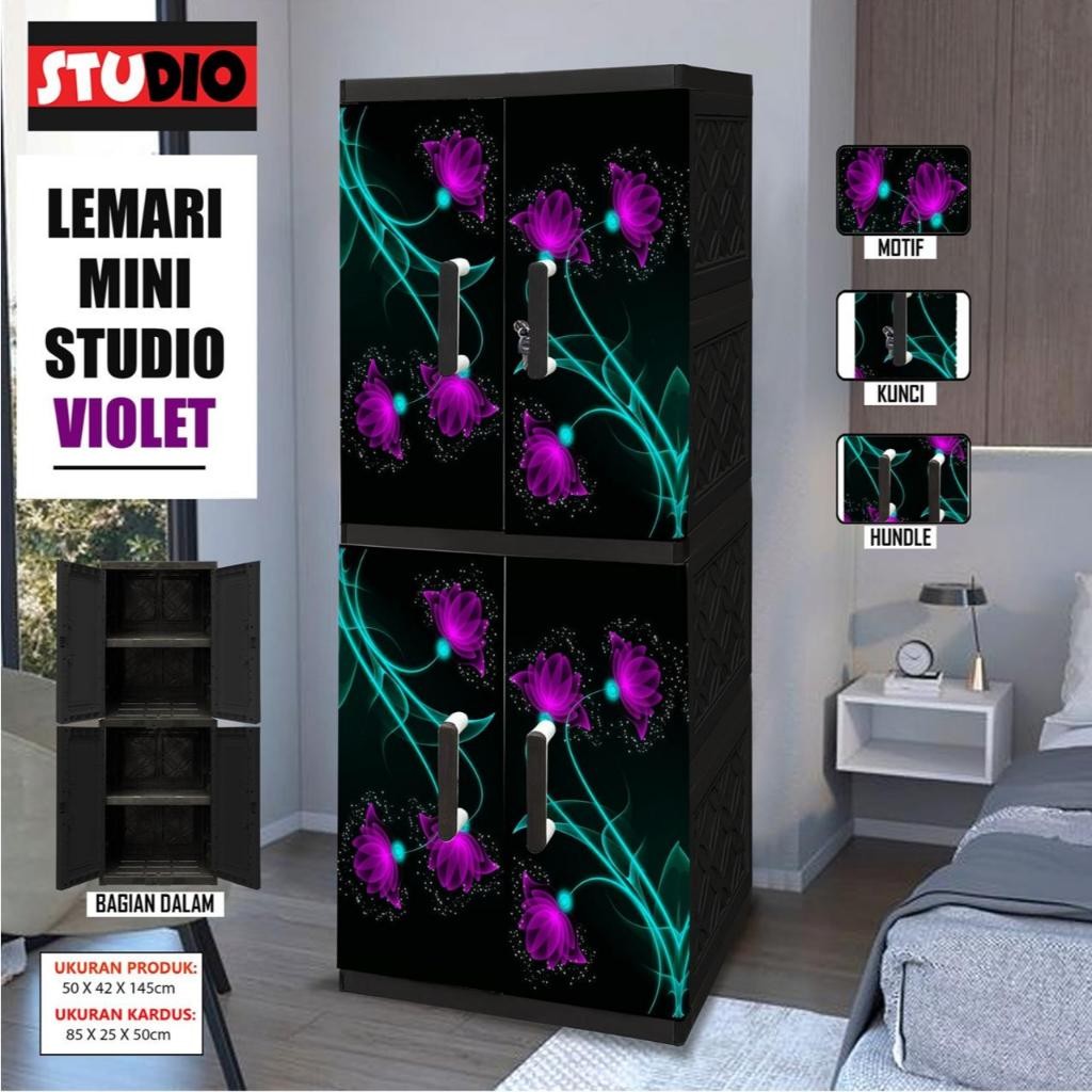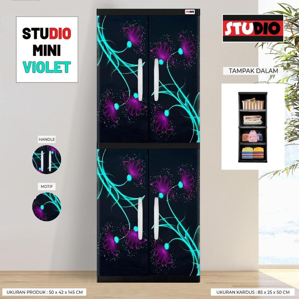 STUDIO LEMARI ANAK MINIJUMBO 2 PINTU SUSUN 4 FULL RAK MOTIF PRINTING GEN Z