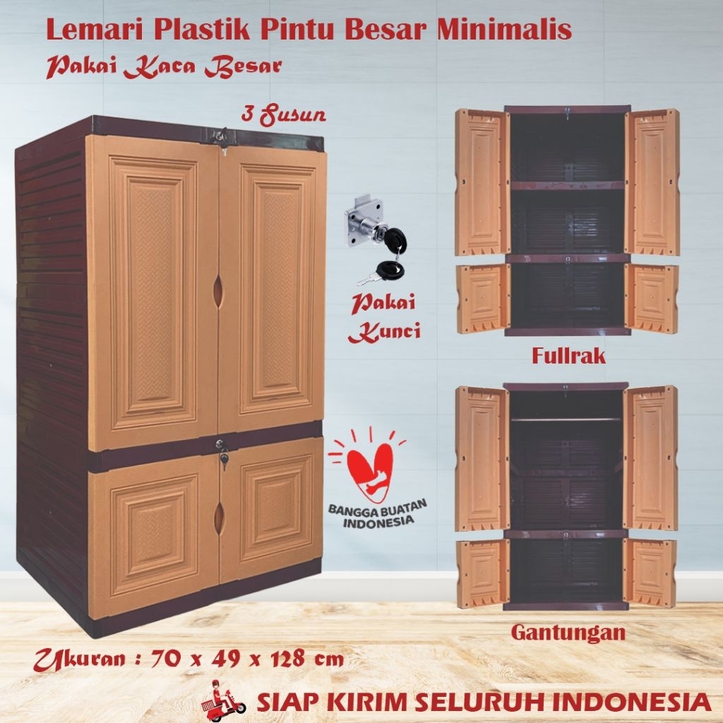 Lemari 3 Susun JUMBo Pintu Besar Minimalis Tipe Rak dan Gantungan Serbaguna
