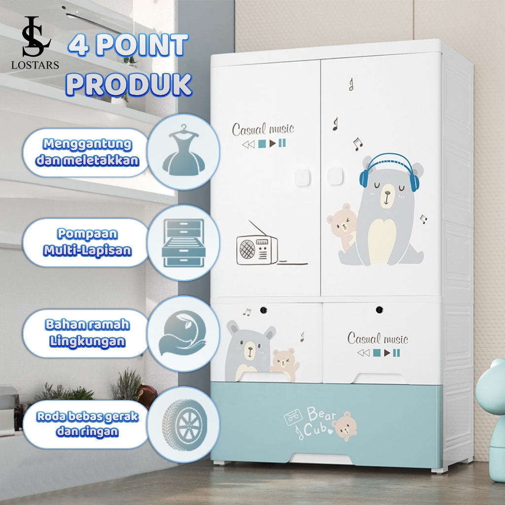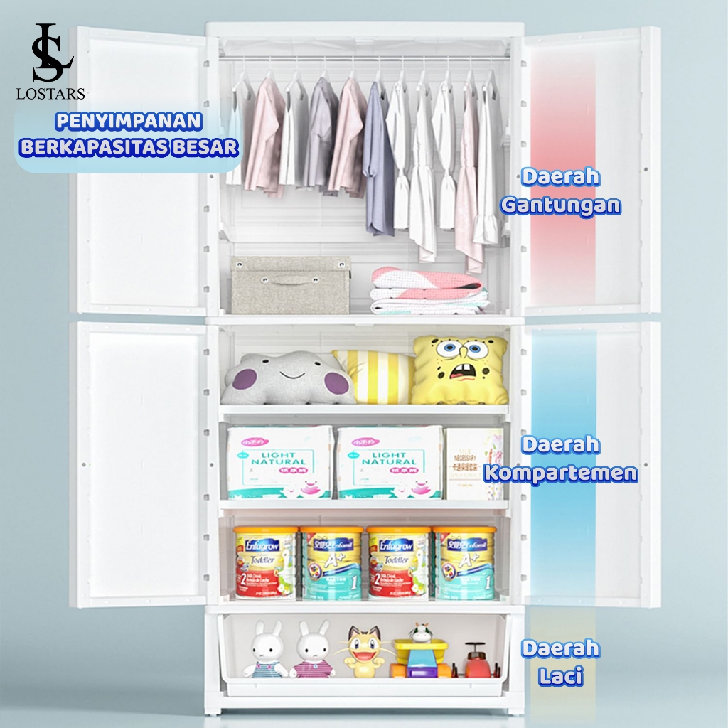 LOSTARS Lemari Pakaian Anak 65CM Lemari bayi Plastik Plastic Storage Cabinet Lemari T6