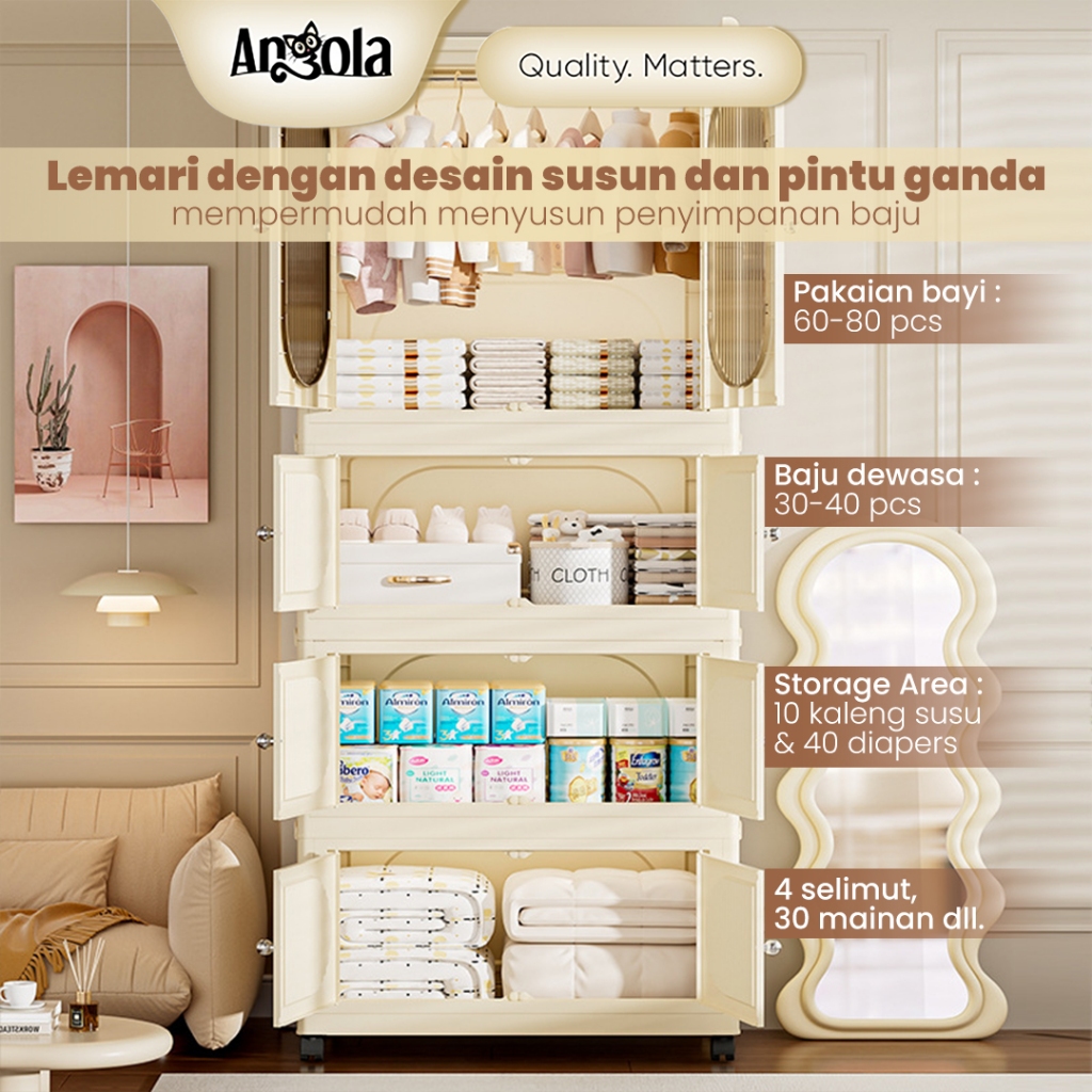 ANGOLA Lemari Pakaian Anak Lipat Susun Minimalis C87C88 Lemari Baju Anak PlastikLemari Serbaguna