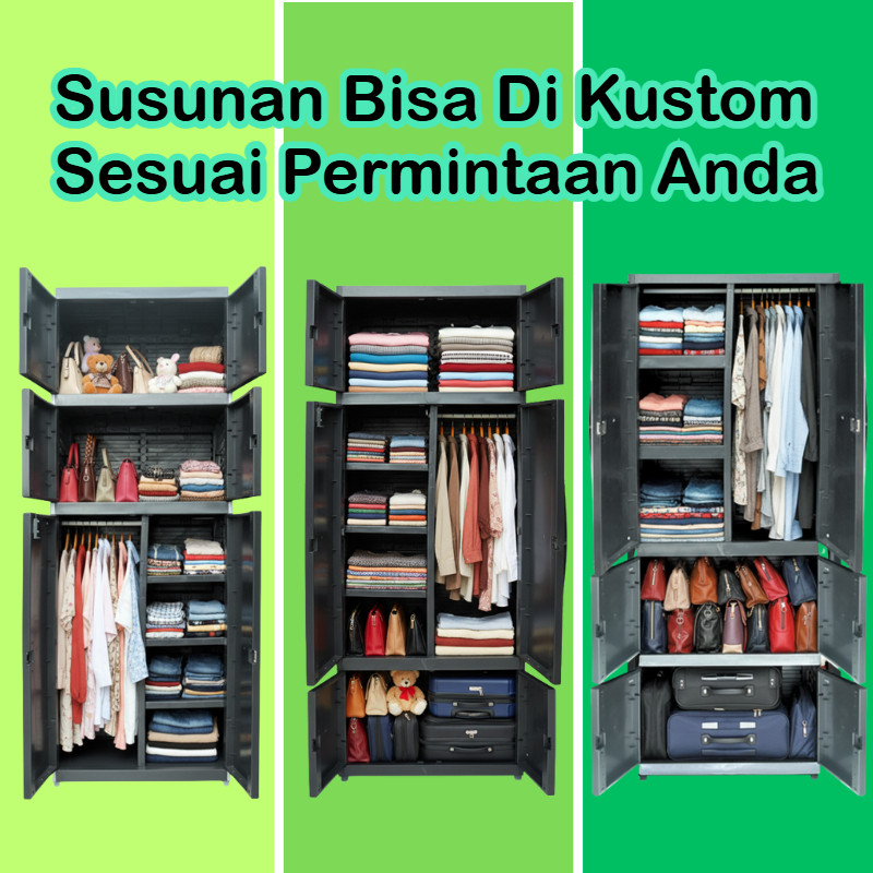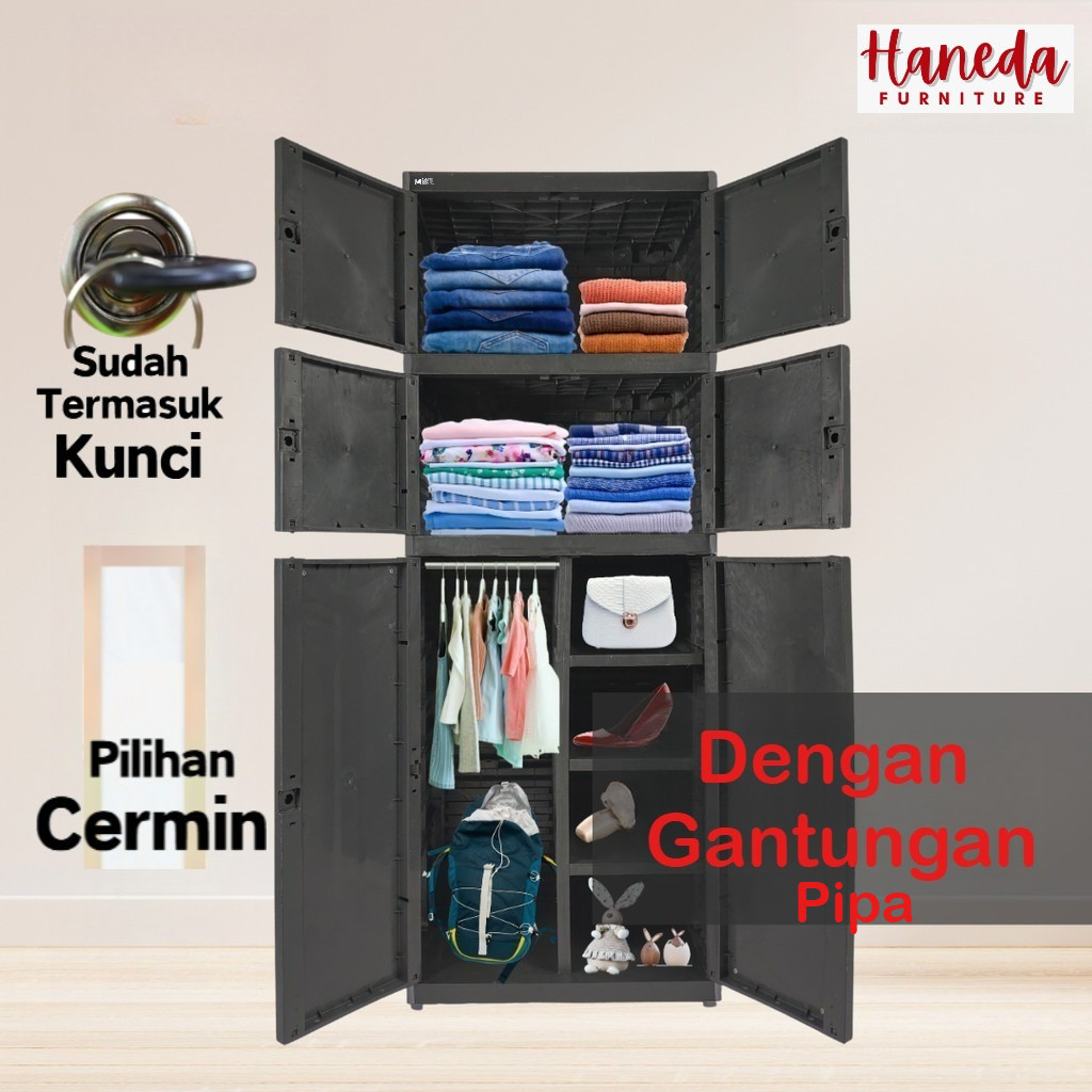 HANEDA Lemari Pakaian Plastik MR PLAS GANTUNGAN STICKER JUMBO Lemari Susun Karakter Cermin Kunci