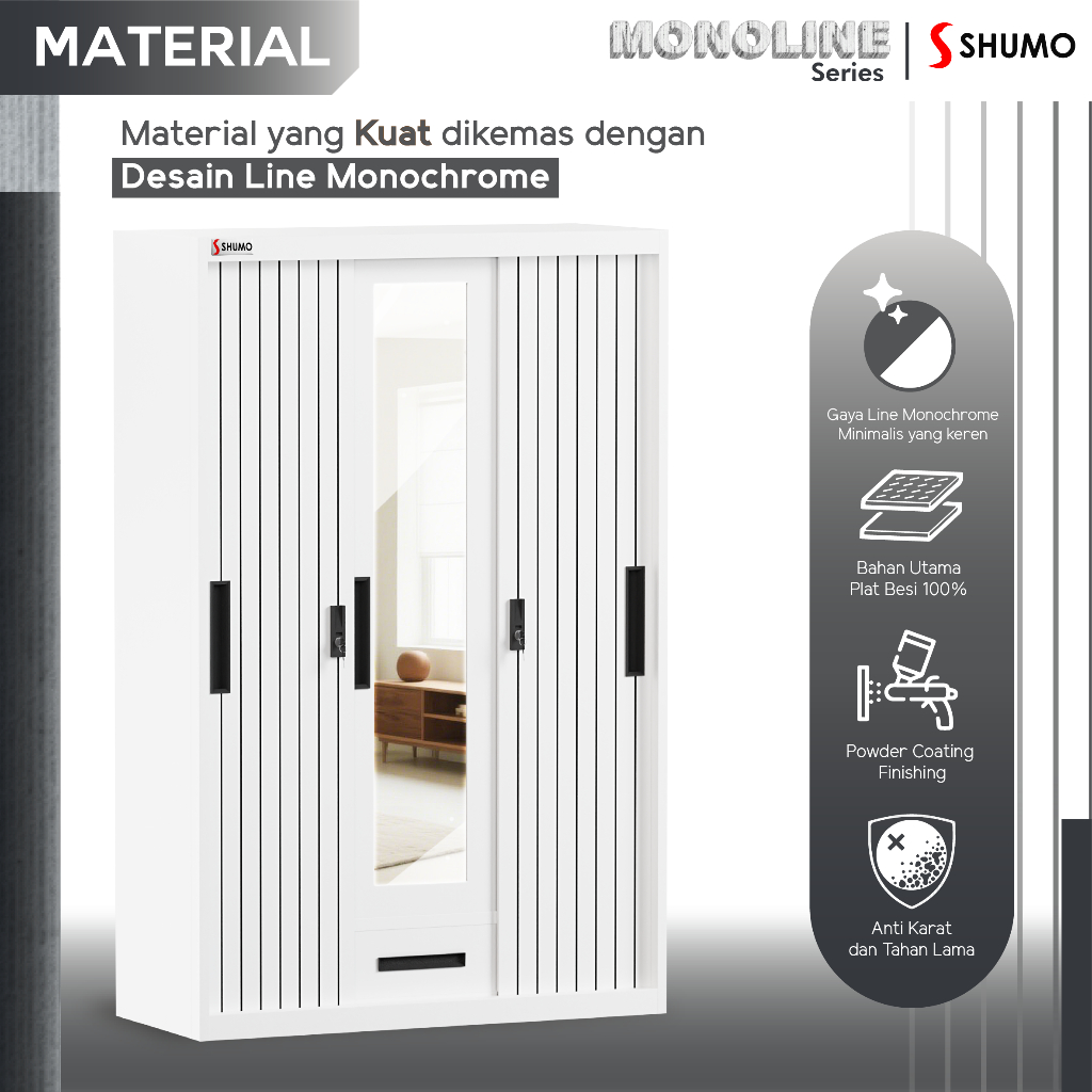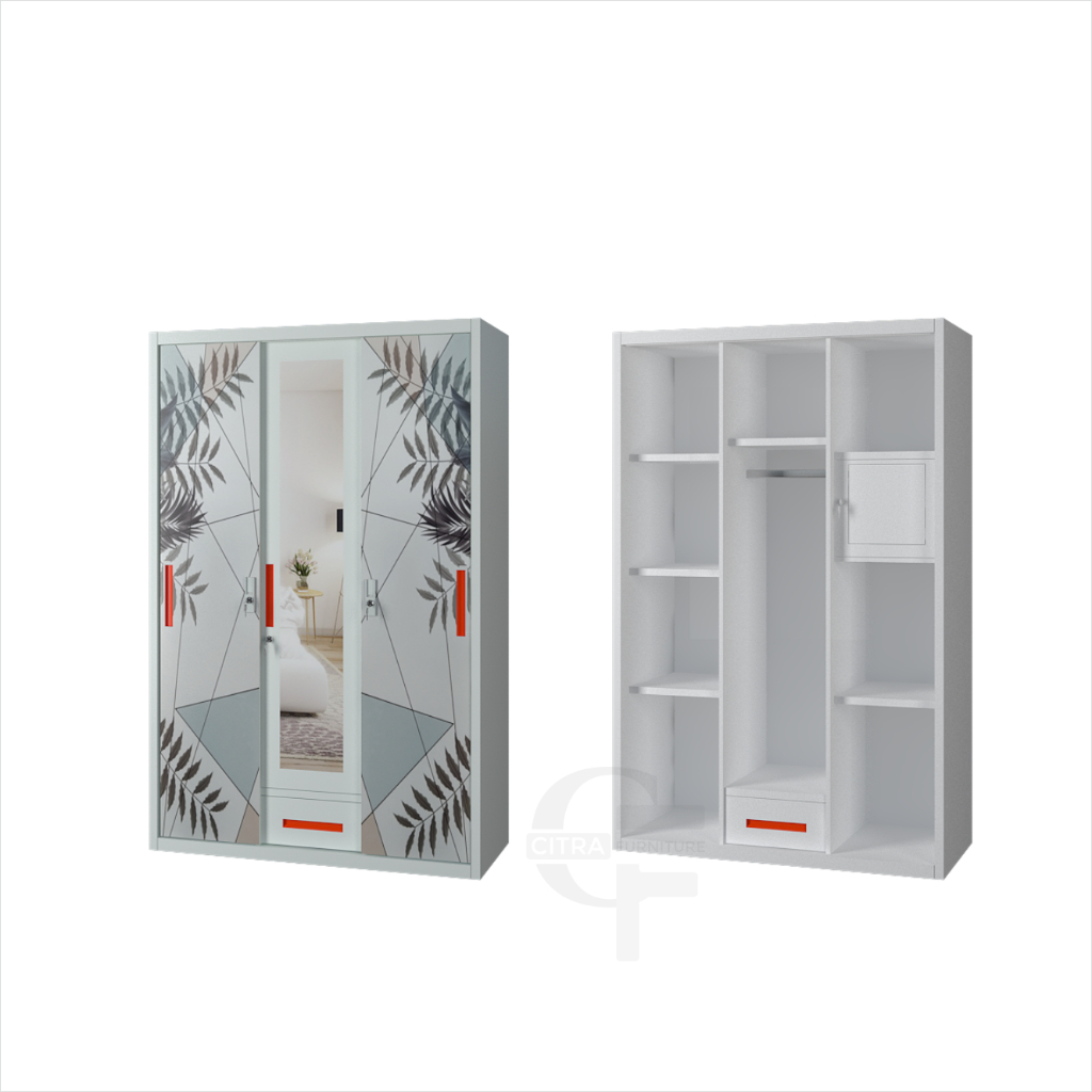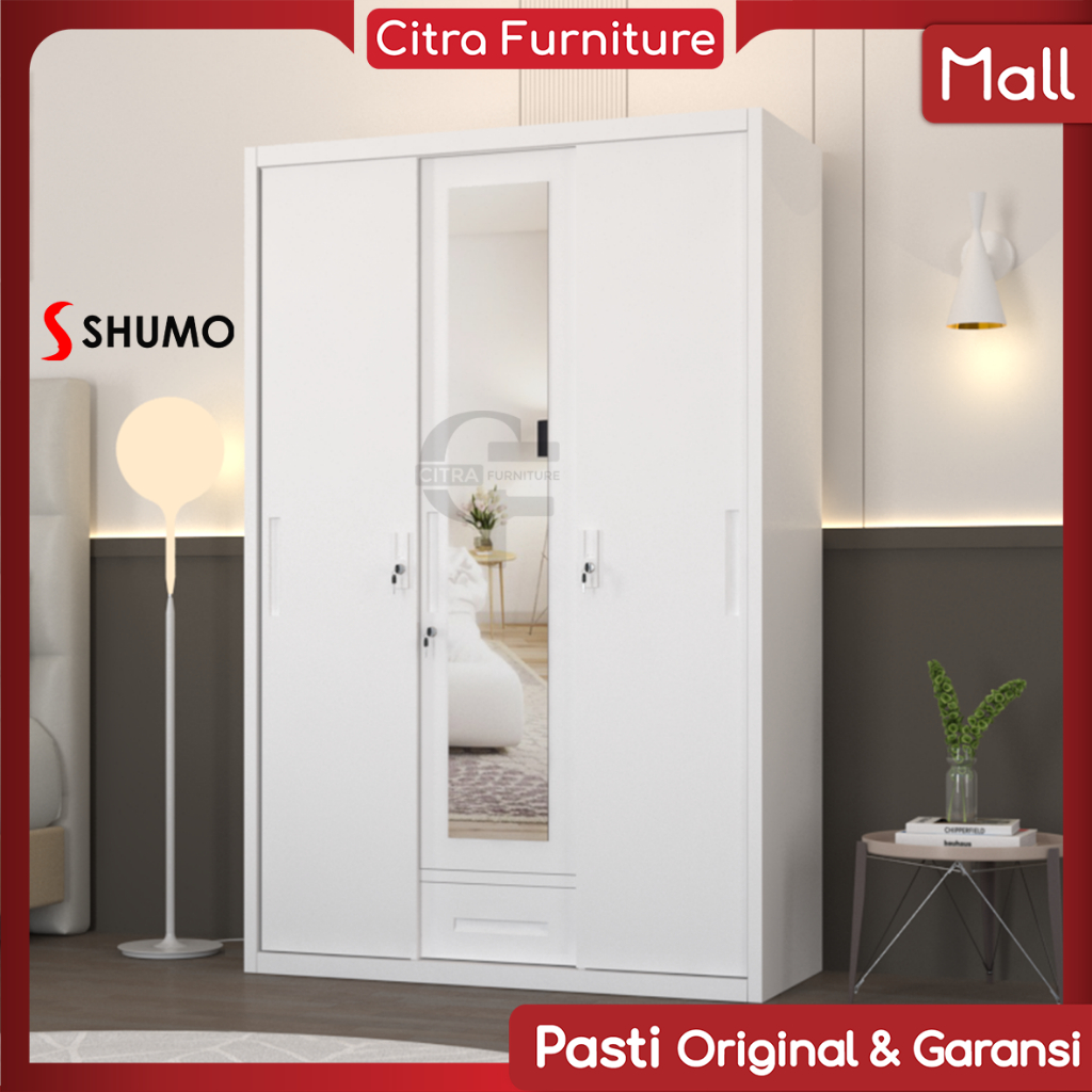 Citra Furniture SHUMO ® Lemari Pakaian Besi 3 Pintu Sliding Minimalis Lemari Baju sleding CTR1