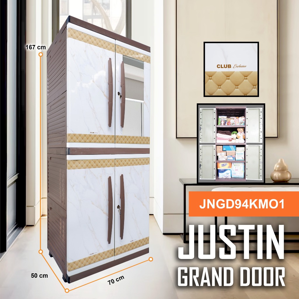 JUSTIN Grand Door CLUB Plastik Furniture Lemari Pakaian Plastik Printing Lemari Baju Cermin