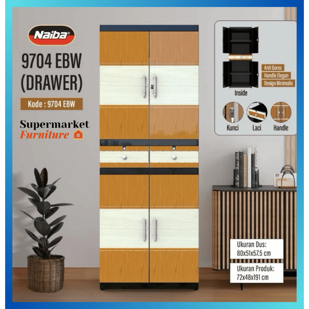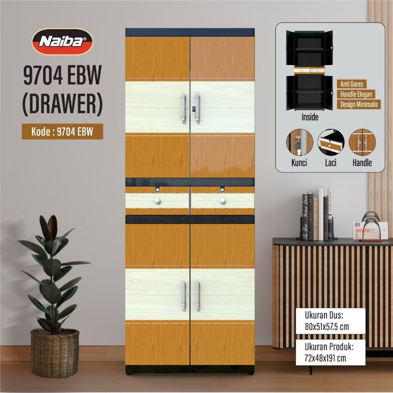 Cargo Lemari Plastik Naiba Fit Drawer 9704 Tanpa Cermin 9724 Mirror Drawer Laci