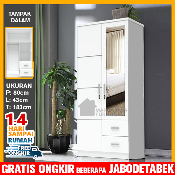 2pintu, full cermin hitam, full cermin putih, Oak-Putih, putih laci, hitam putih
